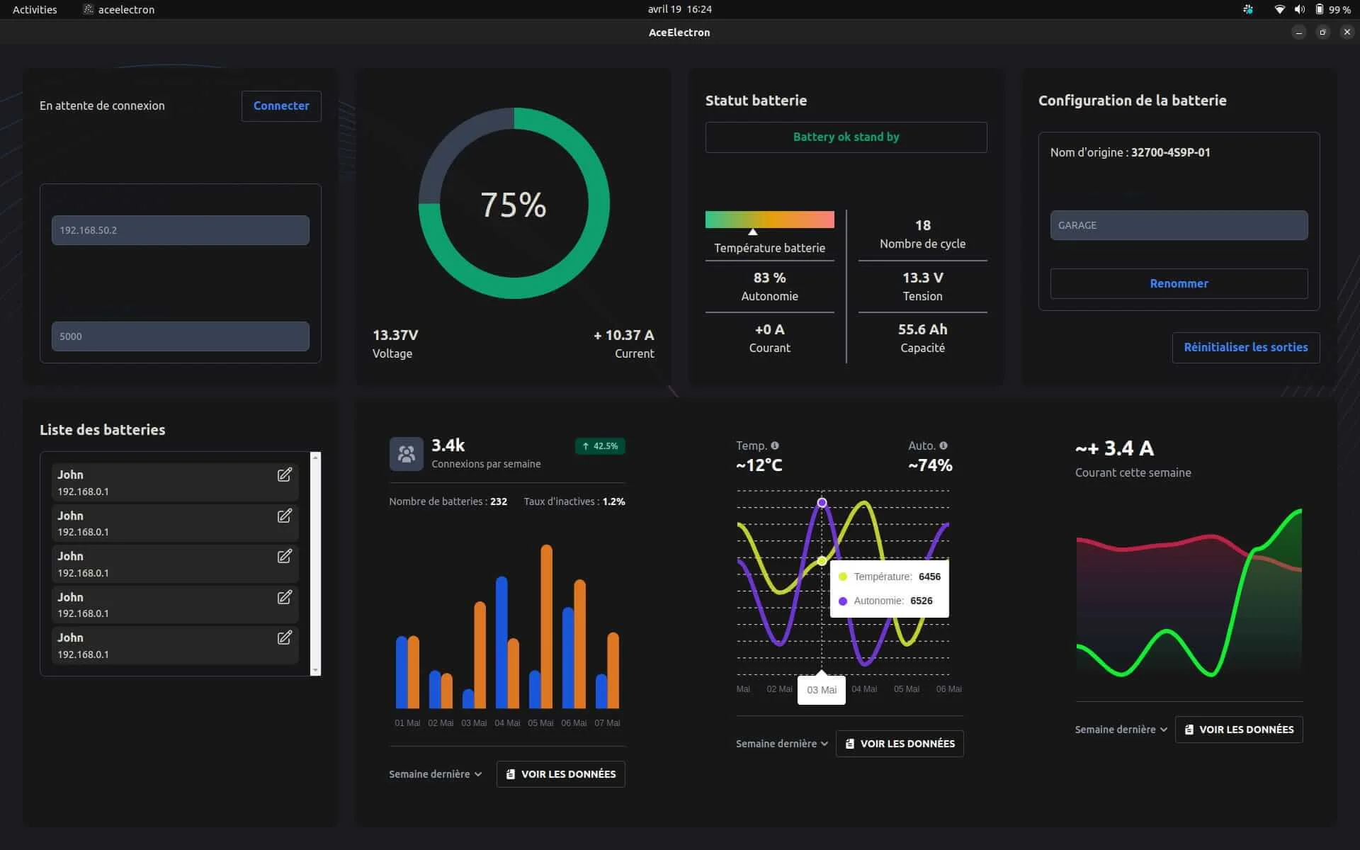 Un fabricant de batteries pour camping-cars nous a confié le développement d'une application mobile de monitoring. L'objectif : permettre aux utilisateurs de visualiser en temps réel l'état de leurs batteries via une connexion Bluetooth Low Energy. Le principal défi technique : communiquer avec les batteries via le protocole Modbus, en traitant les trames brutes et en parsant les octets pour extraire les données exploitables.
