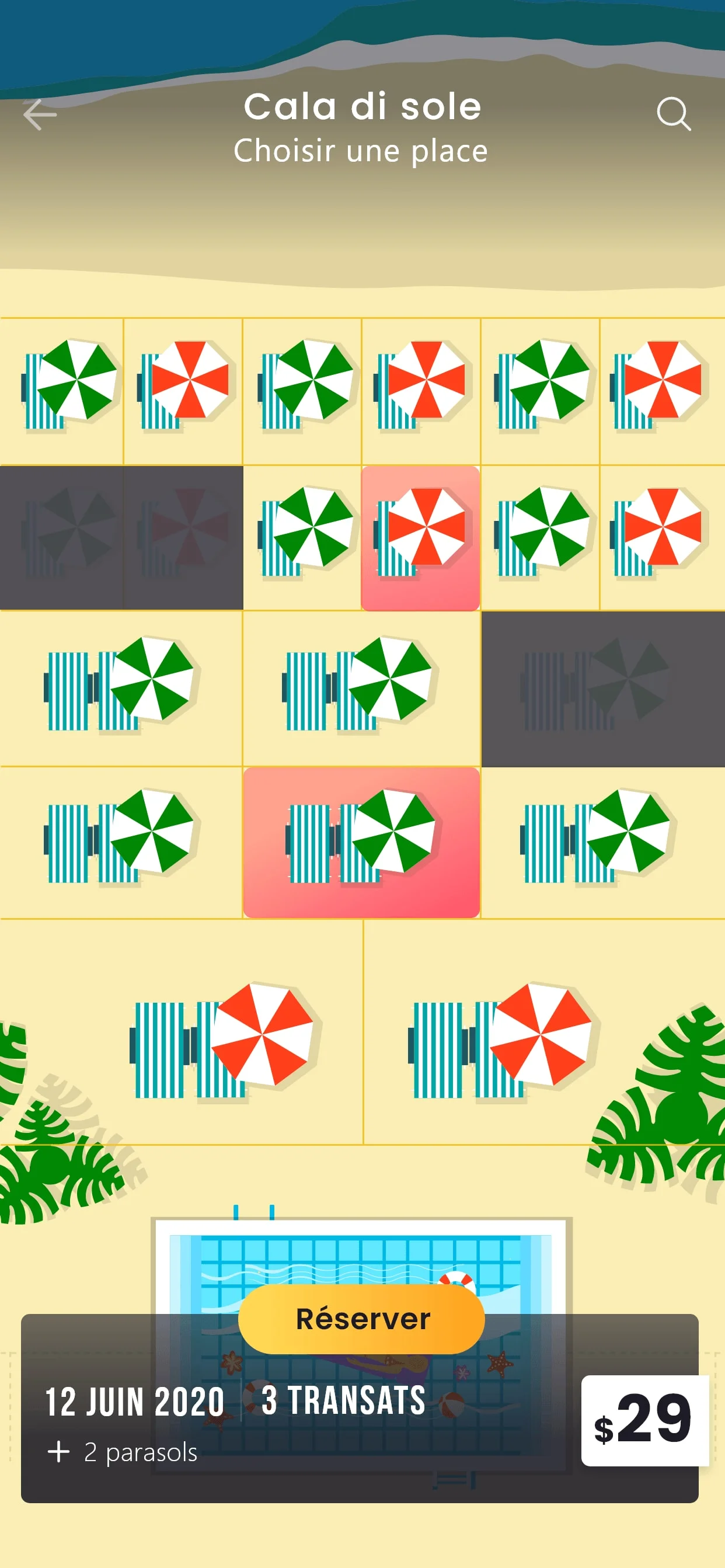 Réservations de transats pour des beach-club et hôtels de luxe