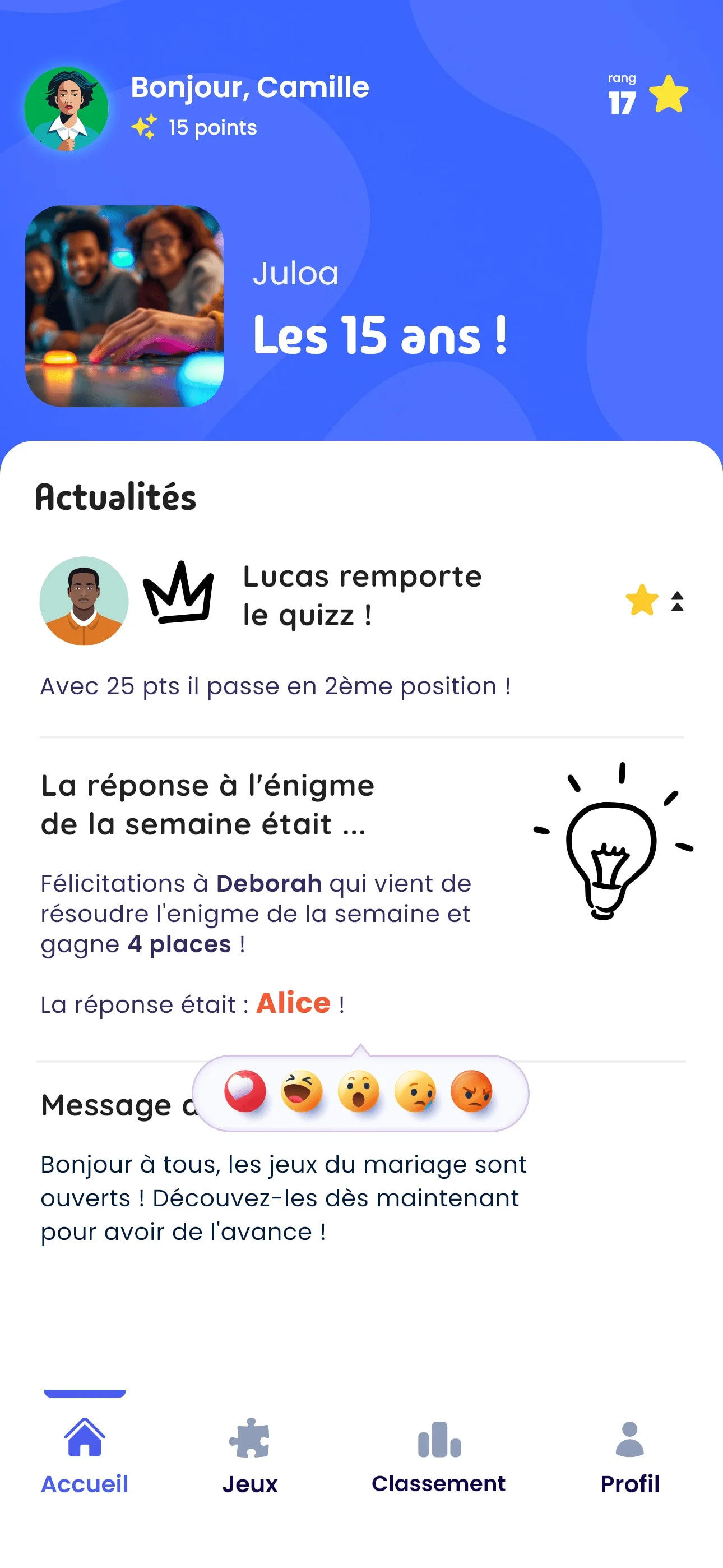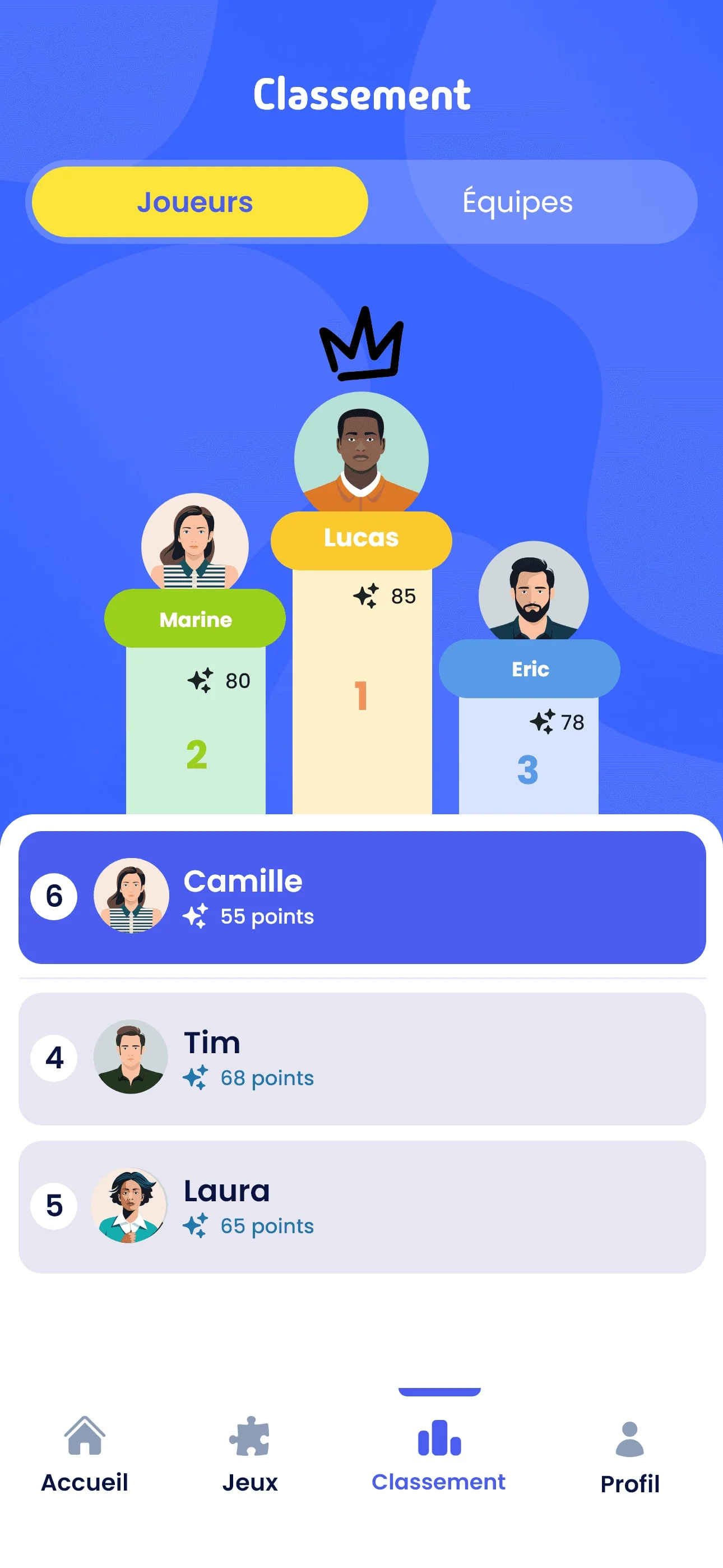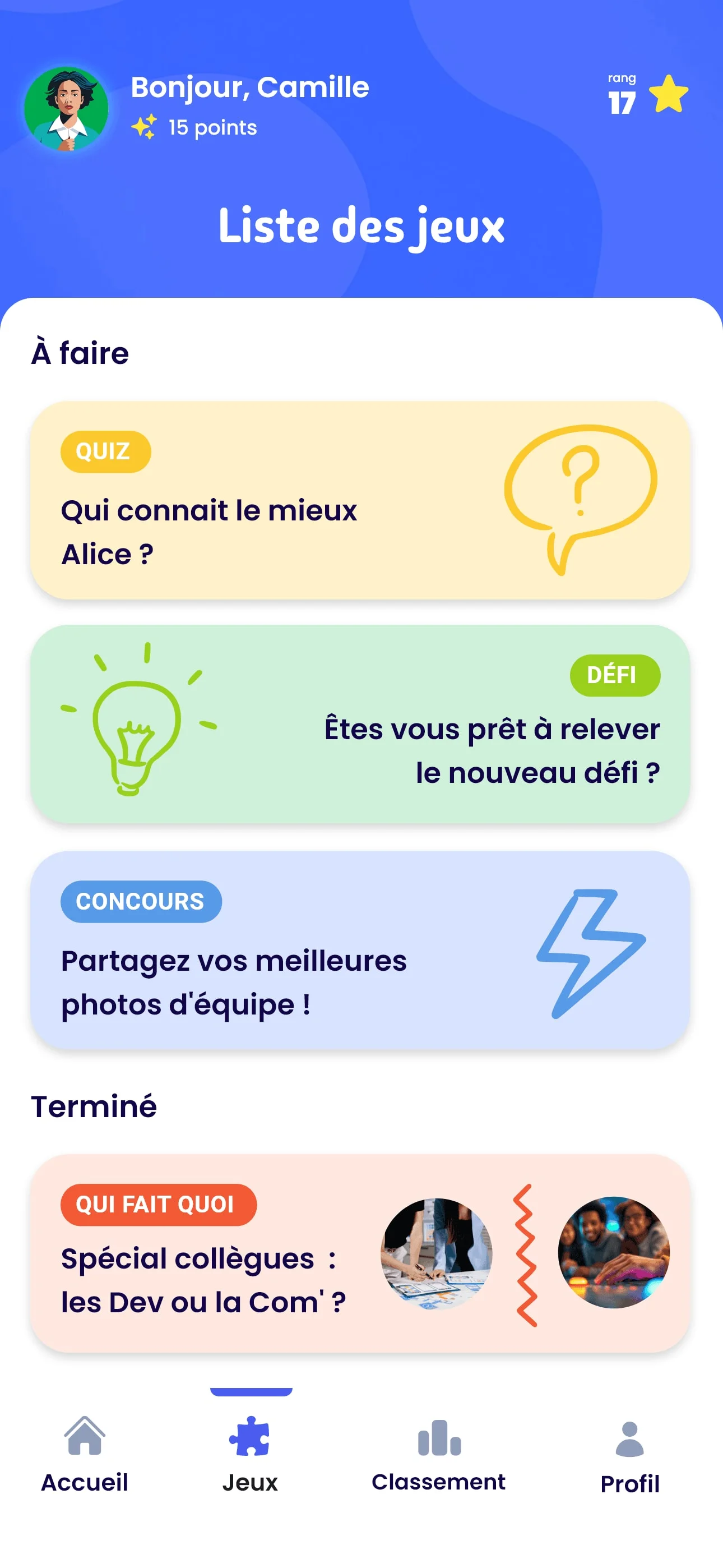 Trema nous a confié le développement complet de leur plateforme SaaS de gamification pour entreprises. L'objectif : proposer des défis et jeux ludiques pour fédérer les équipes lors de séminaires, événements internes ou campagnes sur plusieurs semaines. Chaque collaborateur joue à son rythme depuis son smartphone. Nous avons développé l'application mobile, le backoffice d'administration avec ses multiples moteurs de création de jeux, et l'API backend.